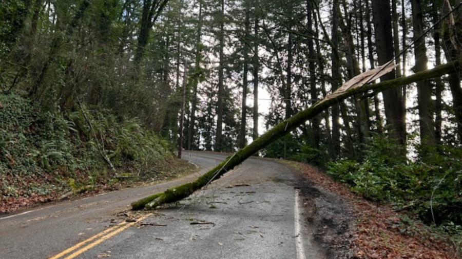 Cuaca sungai kedua dalam dua minggu membawa angin kencang dan menumbangkan pepohonan di Pacific Northwest, menyebabkan pemadaman listrik dan menutup jalan, jalan setapak, dan trotoar di Astoria.
